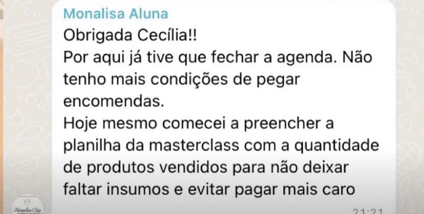 Foi exatamente por isso que criei o curso “Produção Eficiente”. Descobri que, com o planejamento certo e a organização das fornadas, é possível não apenas aumentar a produção, mas fazer isso sem surtar. E o melhor, você ainda vai vender mais!